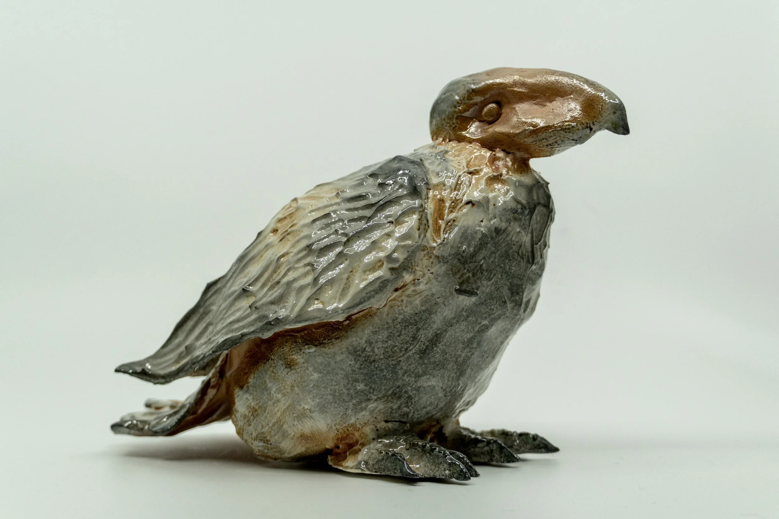 On View: Young Vulture, 2025 - white stoneware, porcelain slips, soda fired